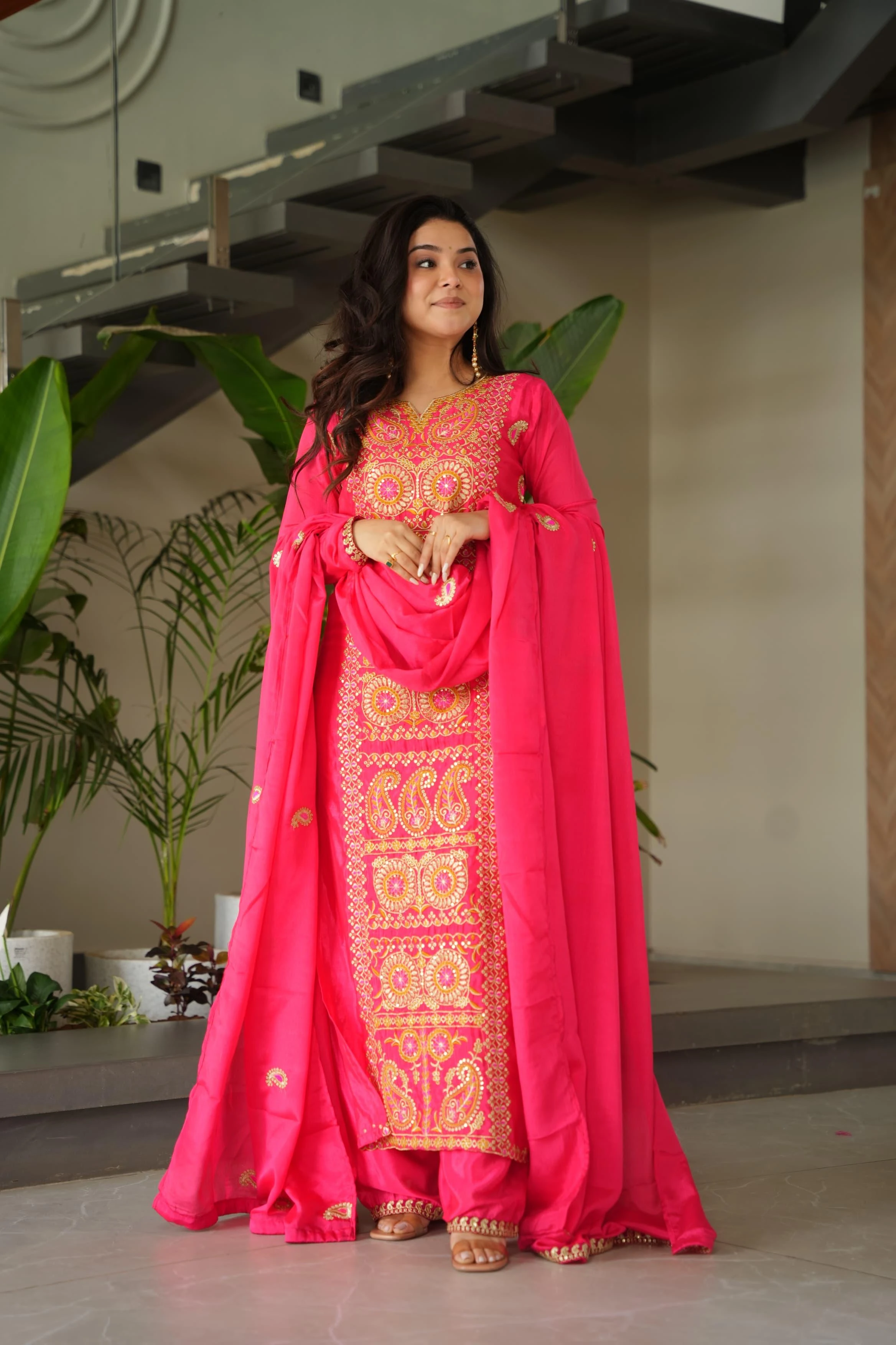 🌸 Eid Special 2026 – Premium Ready-Made Chinnon Silk Top-Pant with Dupatta Set