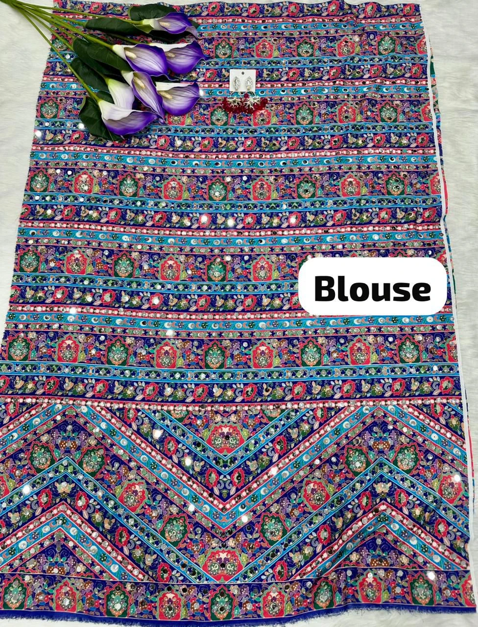 Blouse Fabric: Crepe Silk with Digital Print and Mirror Work