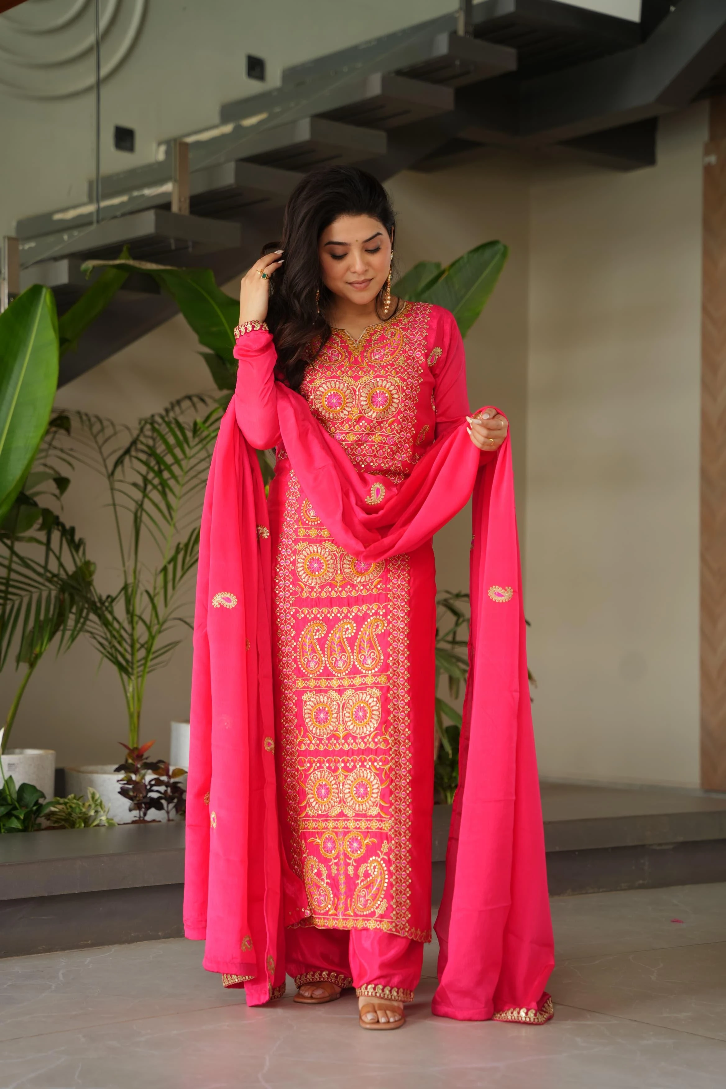 🌸 Eid Special 2026 – Premium Ready-Made Chinnon Silk Top-Pant with Dupatta Set